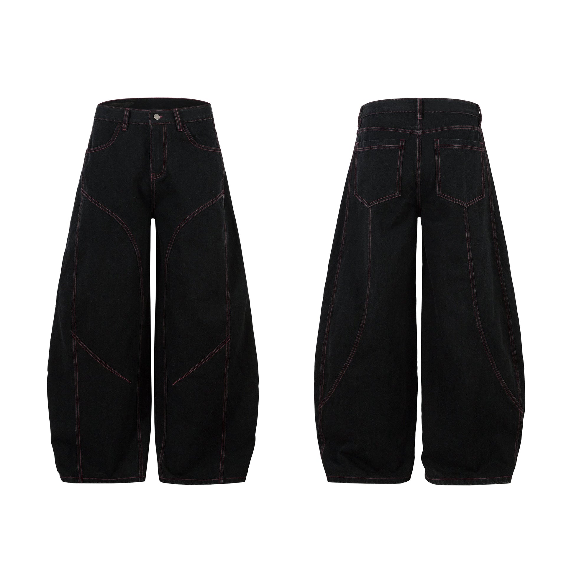Curved Seam Wide-Leg Denim Pants