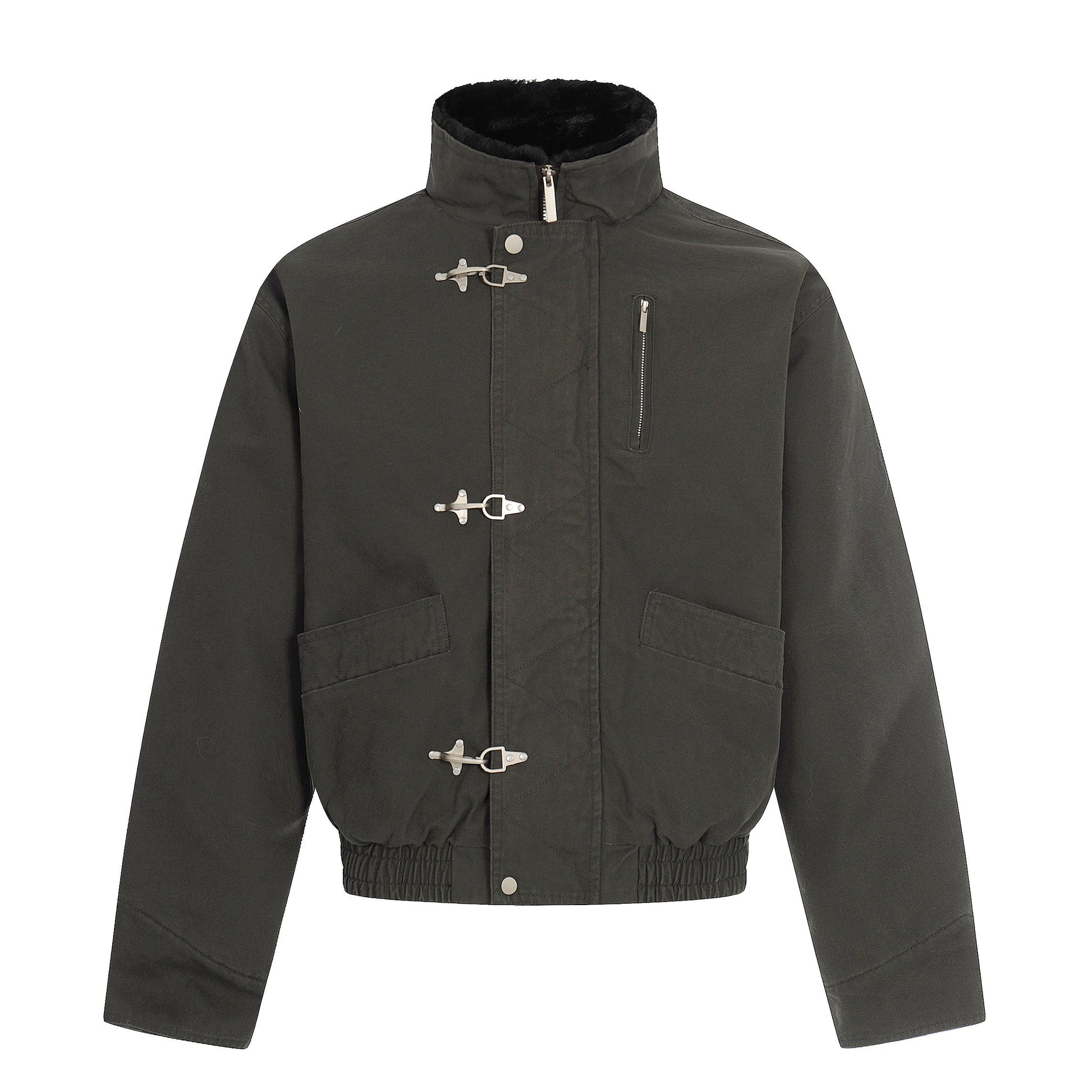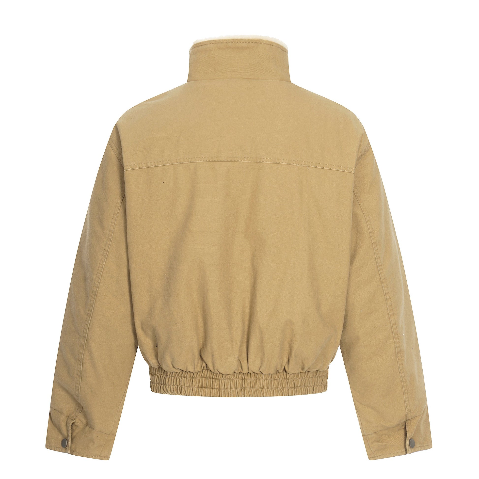 Kurtka bomberka Toggle Sherpa łączy w sobie styl vintage odzieży roboczej z nowoczesną strukturą streetwearową. Wykonana z grubej bawełny z ciepłym stójką z podszewką z koziego futra, ta kurtka ma wyraziste metalowe zapięcia na zatrzaski i skrócony krój bomberki, co nadaje jej schludny, surowy wygląd, który wyróżnia się w chłodne dni.